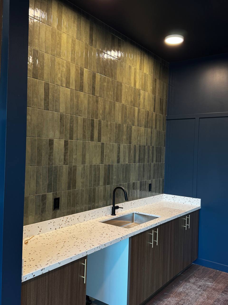 Kitchen backsplashes, bathroom tile, showers, and floor tile installed by licensed professionals.
